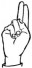 На ћирилици написано КОСТАДИН ДРОБЊАК састоји се из 15 слова [?]. Исписано ћириличном једноручном азбуком за глувонеме: